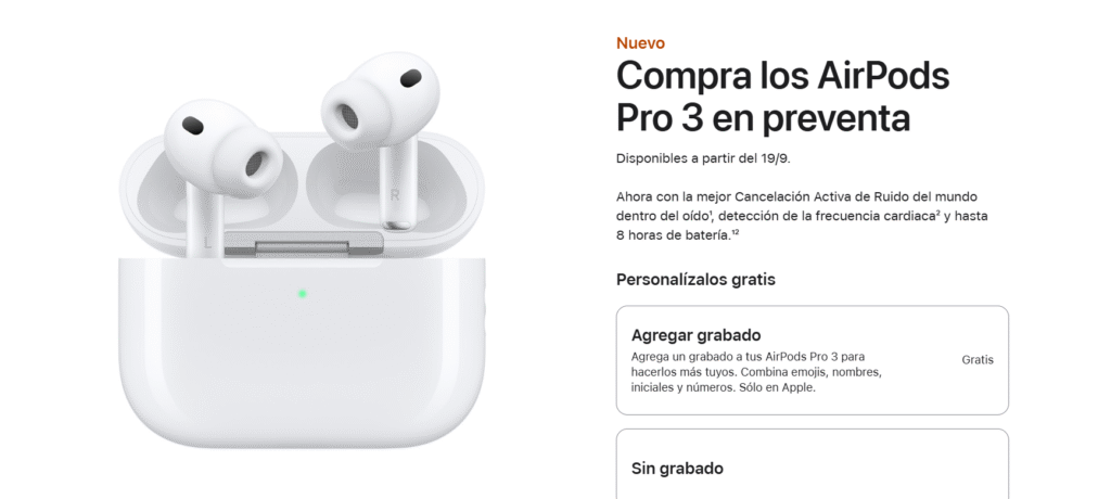 En cuanto a autonomía, los AirPods Pro 3 ofrecen hasta ocho horas más de batería que la generación anterior, lo que representa un incremento del 33% en duración, ideal para usuarios que los usan durante largas jornadas o entrenamientos intensos.